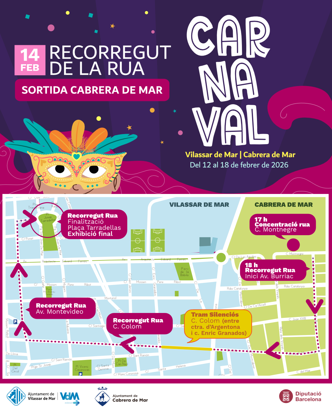 El dissabte 14 de febrer, Cabrera de Mar viurà un dels actes centrals del Carnestoltes amb la Rua i concurs de disfresses, que enguany es tornarà a ferr conjuntament amb Vilassar de Mar.