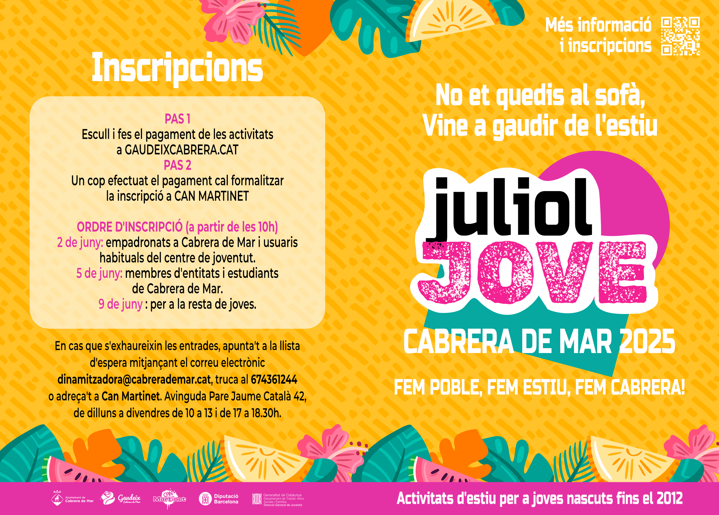 📅 Inscripcions a partir del 2 de juny, amb preferència per als joves empadronats a Cabrera de Mar.